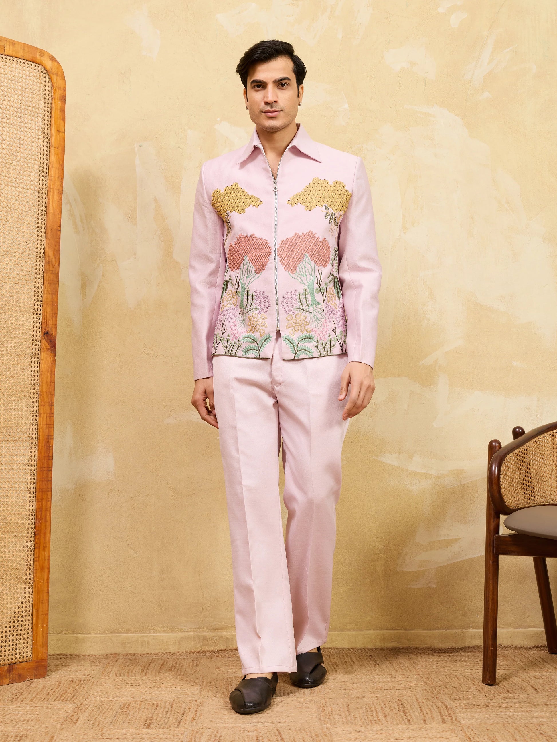 This Pink Velvet Jacket with Multi Thread Work and Unstitched Pant is crafted from premium velvet for a soft, luxurious feel. The jacket features intricate multi-thread embroidery, adding a vibrant and elegant touch, perfect for festive occasions, weddings, and cultural celebrations.